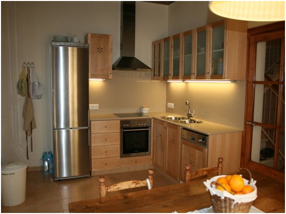 Cocina totalmente equipada. Nevera, lavadora, pequeños electrodomésticos, TV, lavadora-secadora.